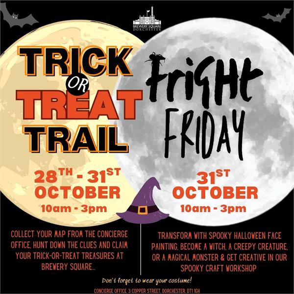 Half term just got a whole lot spookier! Tuesday 28th - Friday 31st October, bring the family to Brewery Square for our Halloween Trick or Treat Trail.