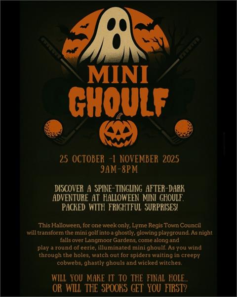 For one week only this Halloween, Lyme Regis Town Council will transform the mini golf course into a ghostly, glowing playground. As night falls over Langmoor Gardens, come along and play a round of eerie, illuminated mini ghoulf. As you wind through the holes, watch out for spiders waiting in creepy cobwebs, ghastly ghouls and wicked witches.