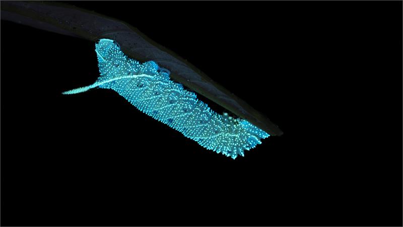 Biofluorescence is the absorption of light at one wavelength followed by its reemission at a different wavelength. Shine the right type of UV light on the world, and it glows back at you in a vibrant display of colour.