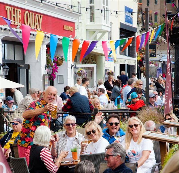 Street entertainment filling Poole Quay and the Old Town with colour and energy